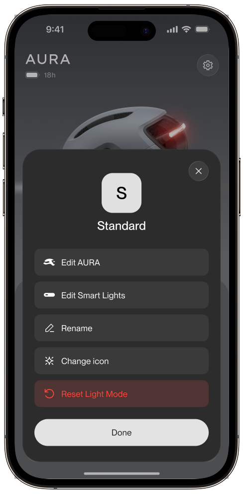 4. Choose what to edit (smart helmet, Smart Lights, etc.).